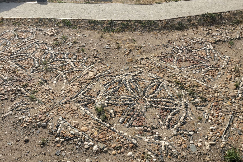 Su pavimiento, que podemos observar hoy con claridad, se compone de guijarros de río y fragmentos de arenisca. También incluye dos líneas paralelas realizadas con los mismos materiales que actuaban como guías para los carros de la época.